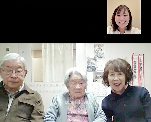Kyōko Mizoguchi during an online interview with her family and LongeviQuest.