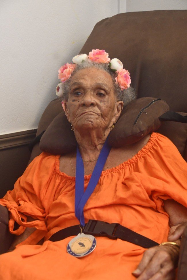 For her 110th birthday, her daughter Josette organized a special celebration in Macouba, her birthplace. The festivities began with a church service, honoring Symphor’s early years as a nun, and continued at the village hall. The town of Macouba chose to honor her by awarding her the town’s honorary citizen medal.