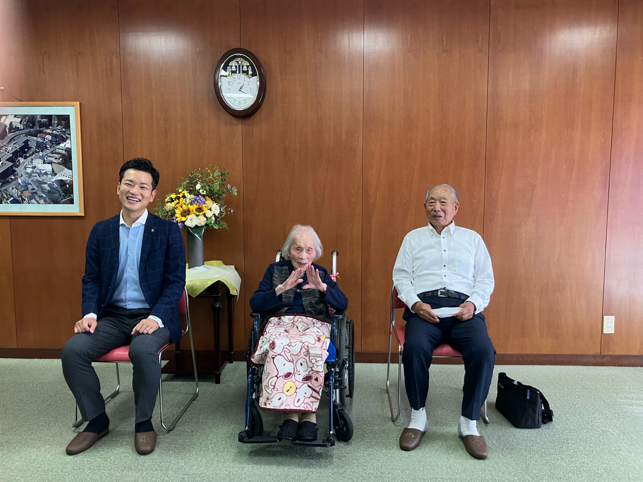 At the age of 111, she received a celebratory visit from the mayor on 3 October 2025. (Source: Minoh City's Mayor)